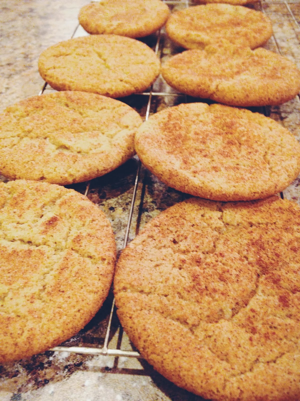Using a cookie scoop, portion out cookie dough and roll the balls in the cinnamon sugar mixture before placing on the cookie sheet. Leave about 2 inches between cookie balls to allow room for spreading.